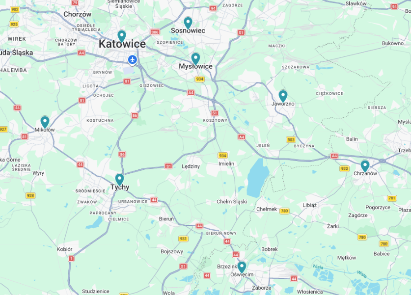 Świadczymy usługi na terenie całego Województwa Śląskiego